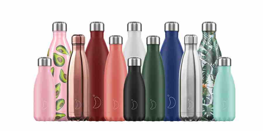 Colección de botellas de agua reutilizables de la marca Chilly's. Haz click y encuentra la que estás buscando.